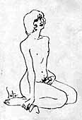 鎌田意好氏所蔵の女装者を描いたペン画(1968年頃) |