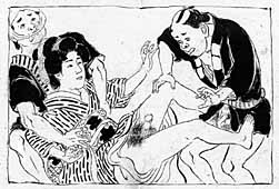 鎌田氏コレクションから「雲助に襲われた娘の股間に一物が!」 |