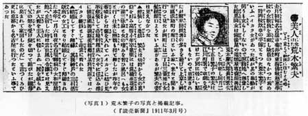 荒木繁子の写真と掲載記事。 (『読売新聞』1911年3月号) |